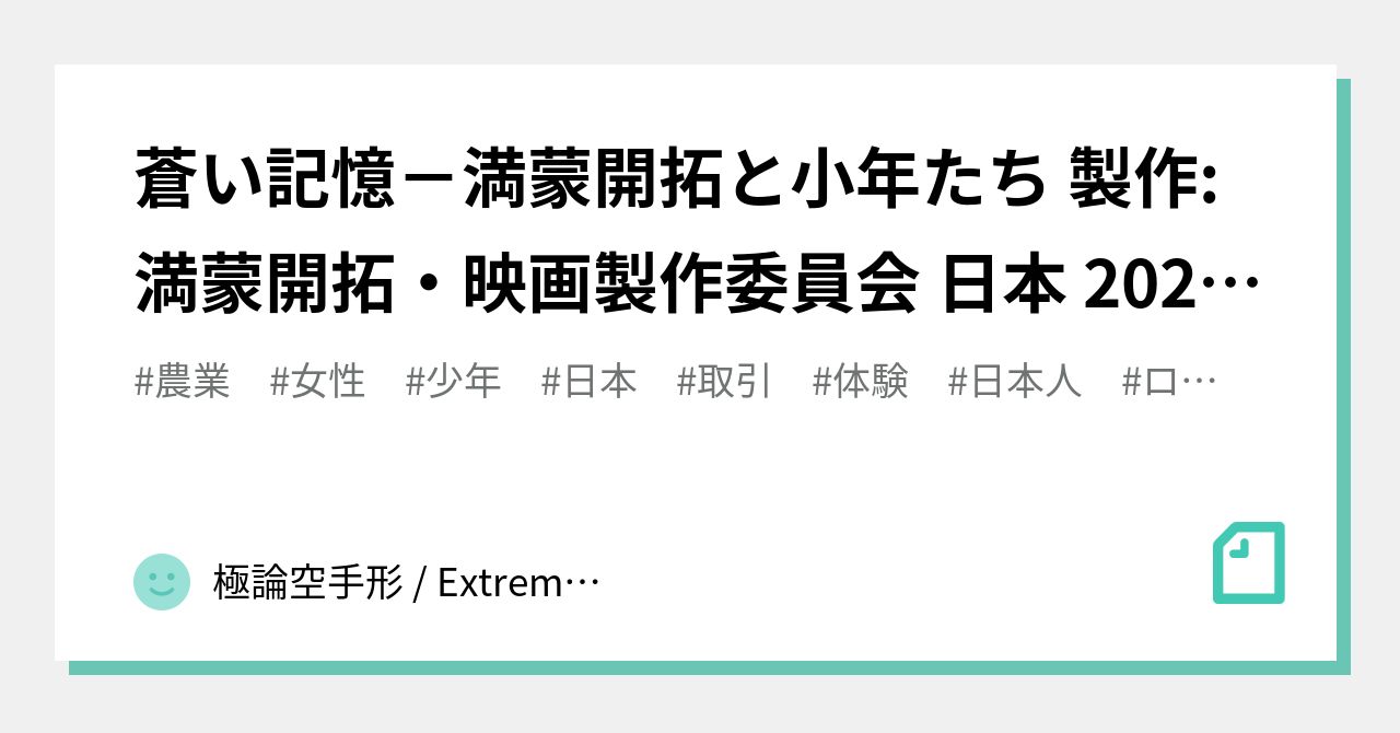 蒼い記憶-満蒙開拓と小年たち 製作:満蒙開拓・映画製作委員会 日本 20220725 – note