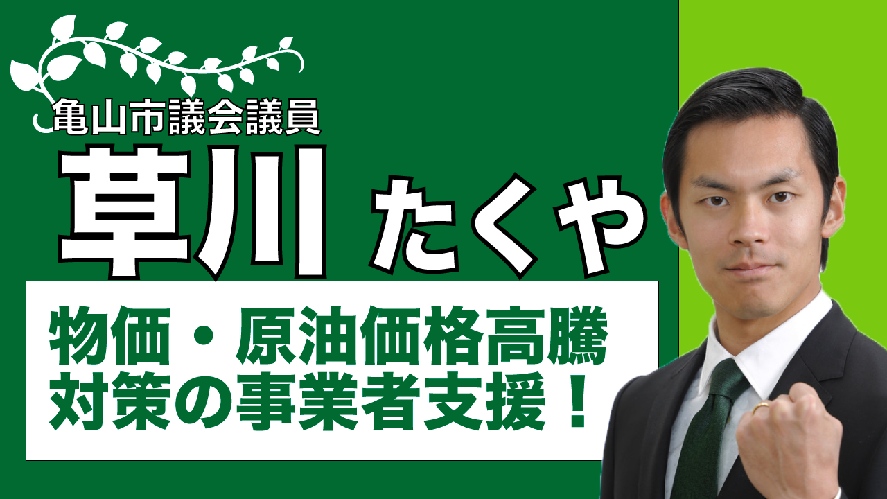 - 【亀山市 草川草川たくや】物価高騰・原油価格高騰対策!中小企業等の事業継続支援事業