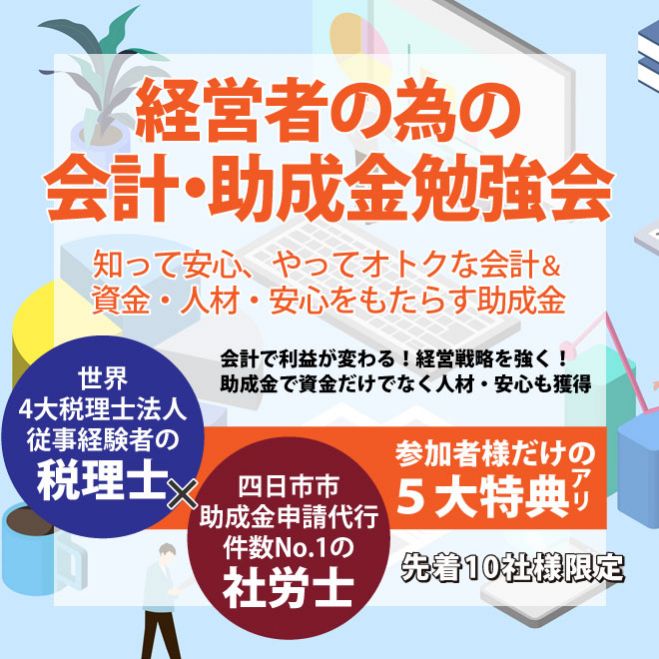 税理士×社労士コラボ勉強会 「知って安心、やってオトクな会計」「資金・人材・安心をもたらす助成金」 2022年12月7日(三重県) - こくちーずプロ