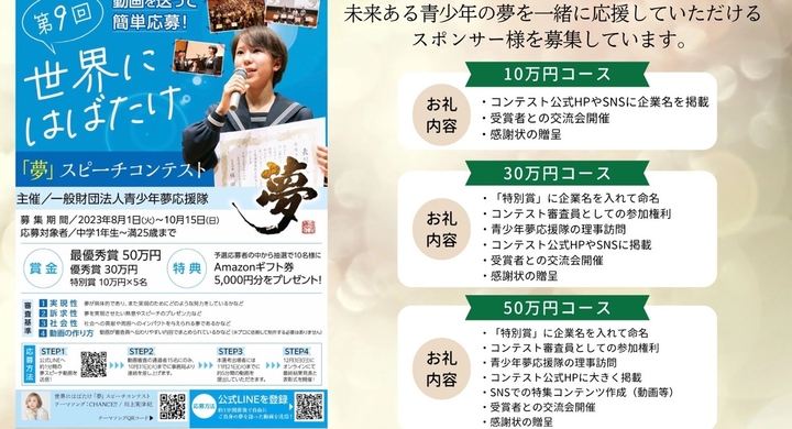 - 1分動画で夢を語る「第9回夢スピーチコンテスト」のスポンサー様を募集 - ValuePress!