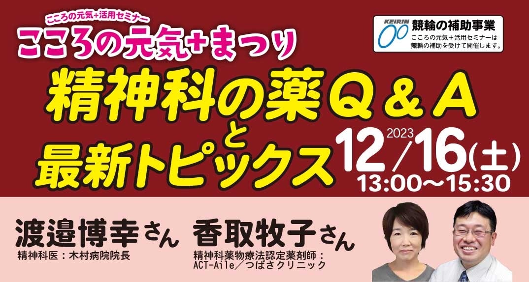 特定非営利活動法人地域精神保健福祉機構のプレスリリース(2023年12月6日 08時00分)【NPO法⼈地域精神保健福祉機構・コンボ主催】 『精神科の薬Q&Aと最新トピックス』≪『こころの元気+』活用セミナー≫