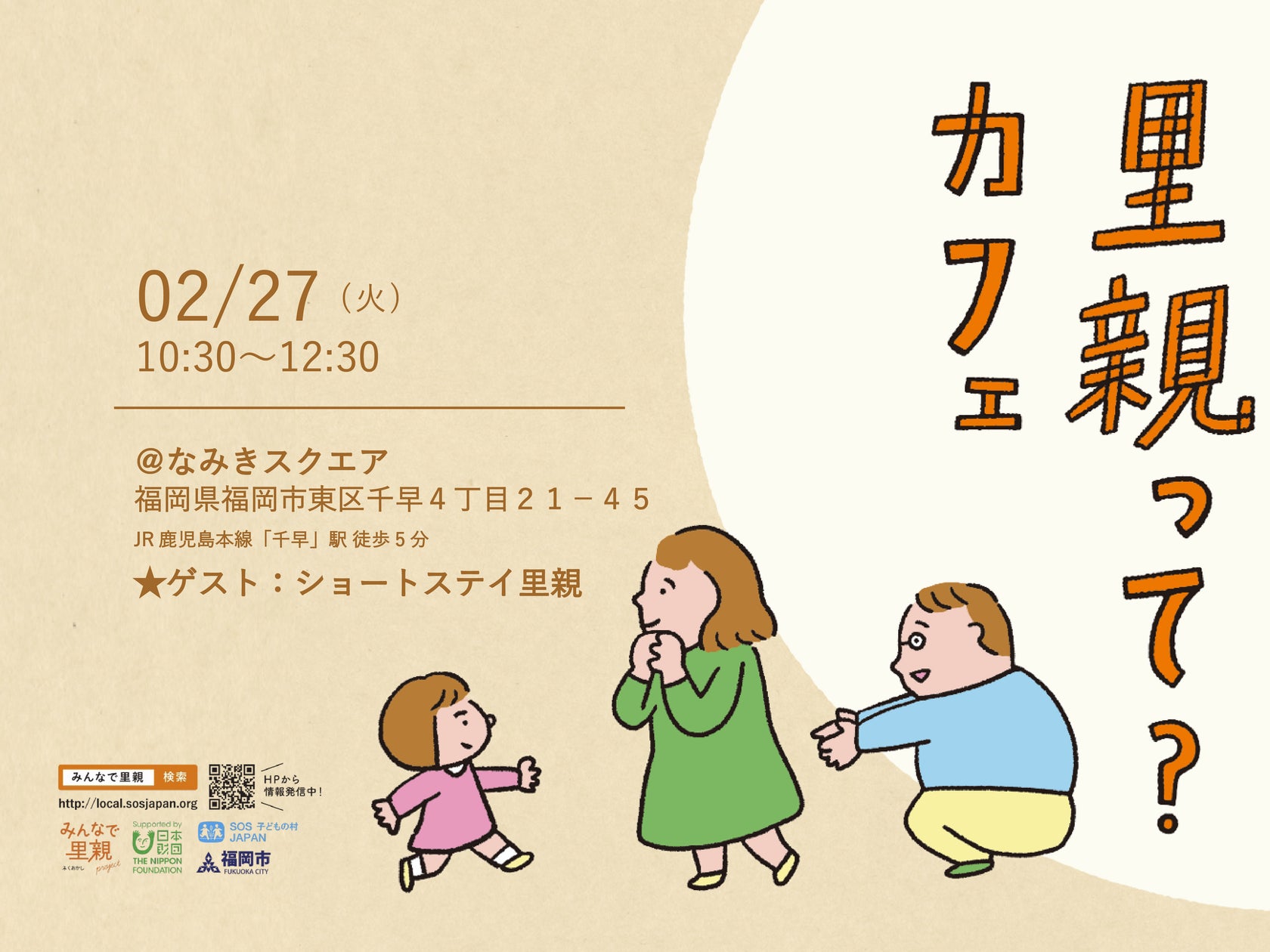 【イベント】《一般向け》ショートステイ里親 説明会「里親って?カフェ」を2/27(火)10:30〜12:30に 福岡市東区 なみきスクエアで開催いたします。