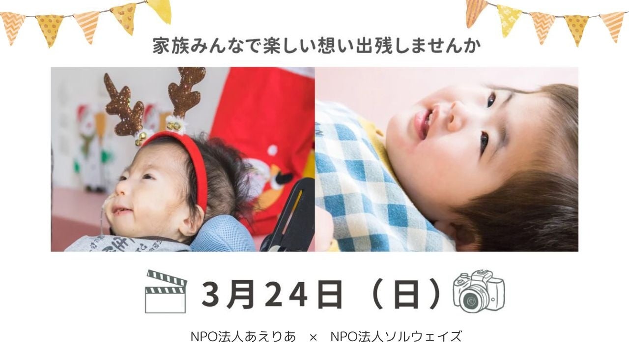 特定非営利活動法人あえりあのプレスリリース(2024年2月20日 08時10分)医療的ケア児や重症心身障害児も、気軽に家族写真や記念写真を。「ソルウェイズ写真館」