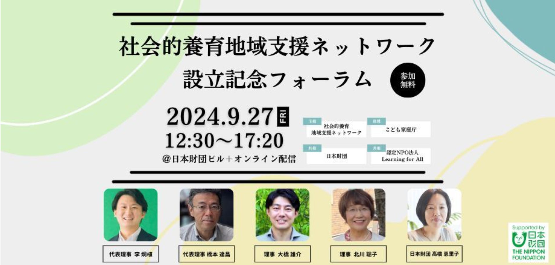 認定特定非営利活動法人 Learning for Allのプレスリリース(2024年9月13日 11時00分)【9月27日(金)設立記念フォーラム開催】社会的養育地域支援の推進を目指す全国ネットワーク組織「一般社団法人 社会的養育地域支援ネットワーク」 が創設
