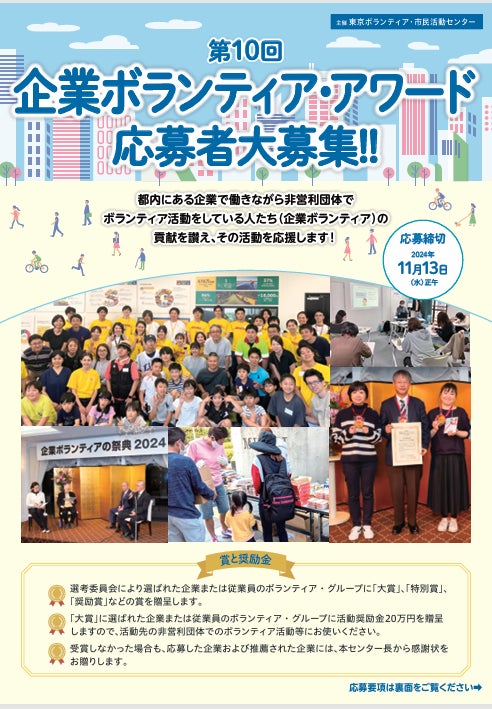 社会福祉法人 東京都社会福祉協議会 東京ボランティア・市民活動センターのプレスリリース(2024年9月20日 16時34分)「第10回 企業ボランティア・アワード」応募者大募集!