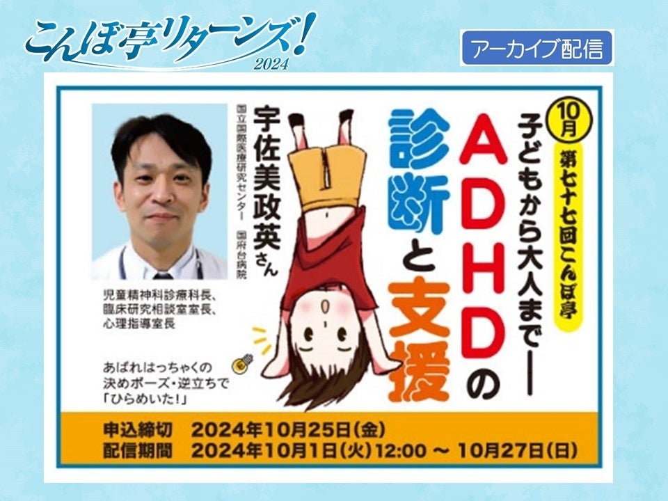 【NPO法⼈地域精神保健福祉機構・コンボ】こんぼ亭リターンズ2024(10月)「子どもから大人まで ADHDの診断と支援」:10/1より動画配信開始!(申込締切10/25)