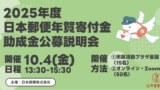 2025年度の日本郵便「年賀寄付金助成」の公募説明会を開催します。年賀寄付金事務局担当の方をお迎えして、助成金の趣旨や、今年の公募の特徴などをお話しいただきます。参加費は無料です。[画像1:https...