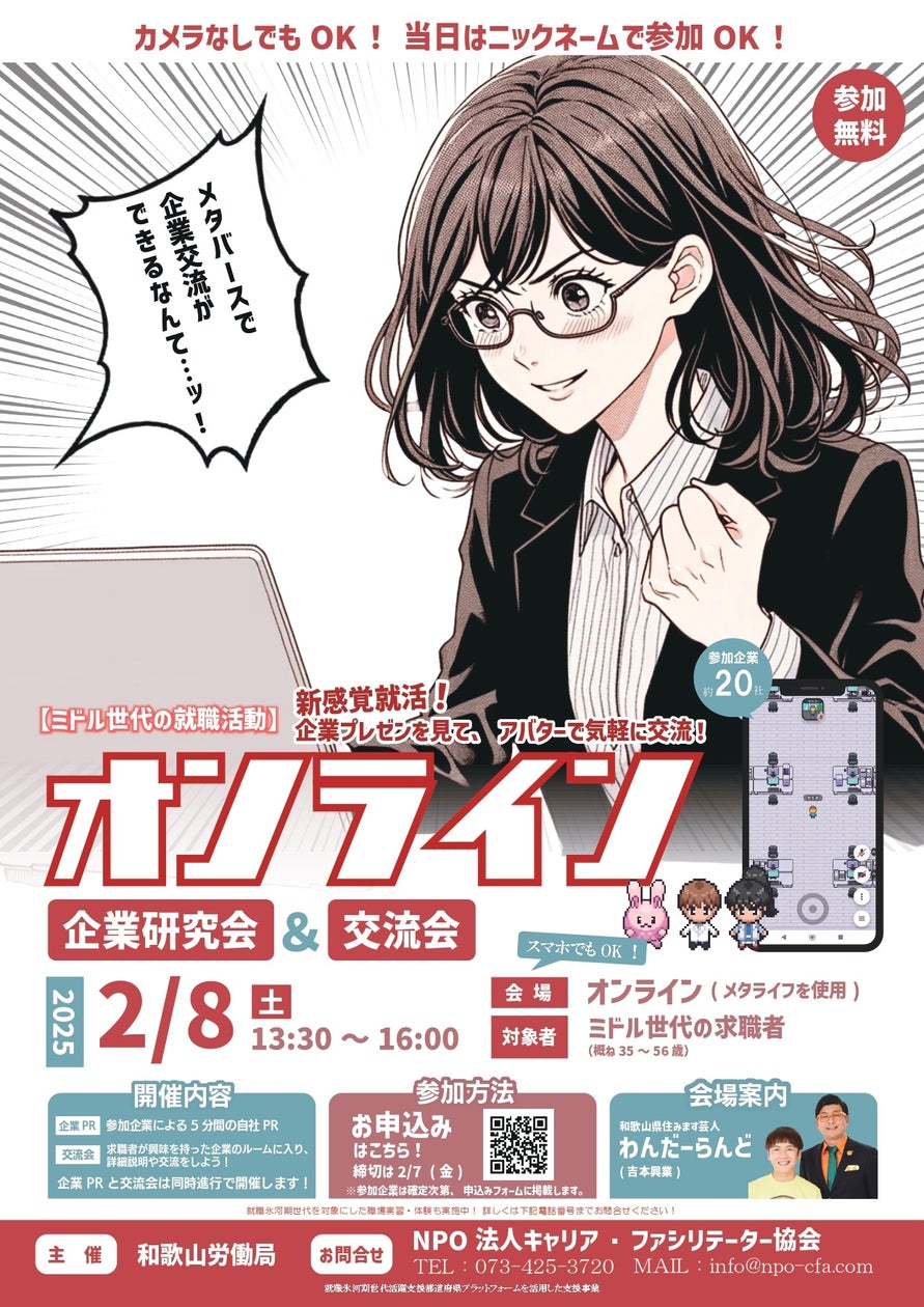 NPO法人キャリア・ファシリテーター協会- メタバースを活用した新感覚の就職支援イベント -和歌山労働局が主催で、2025年2月8日にオンライン …
