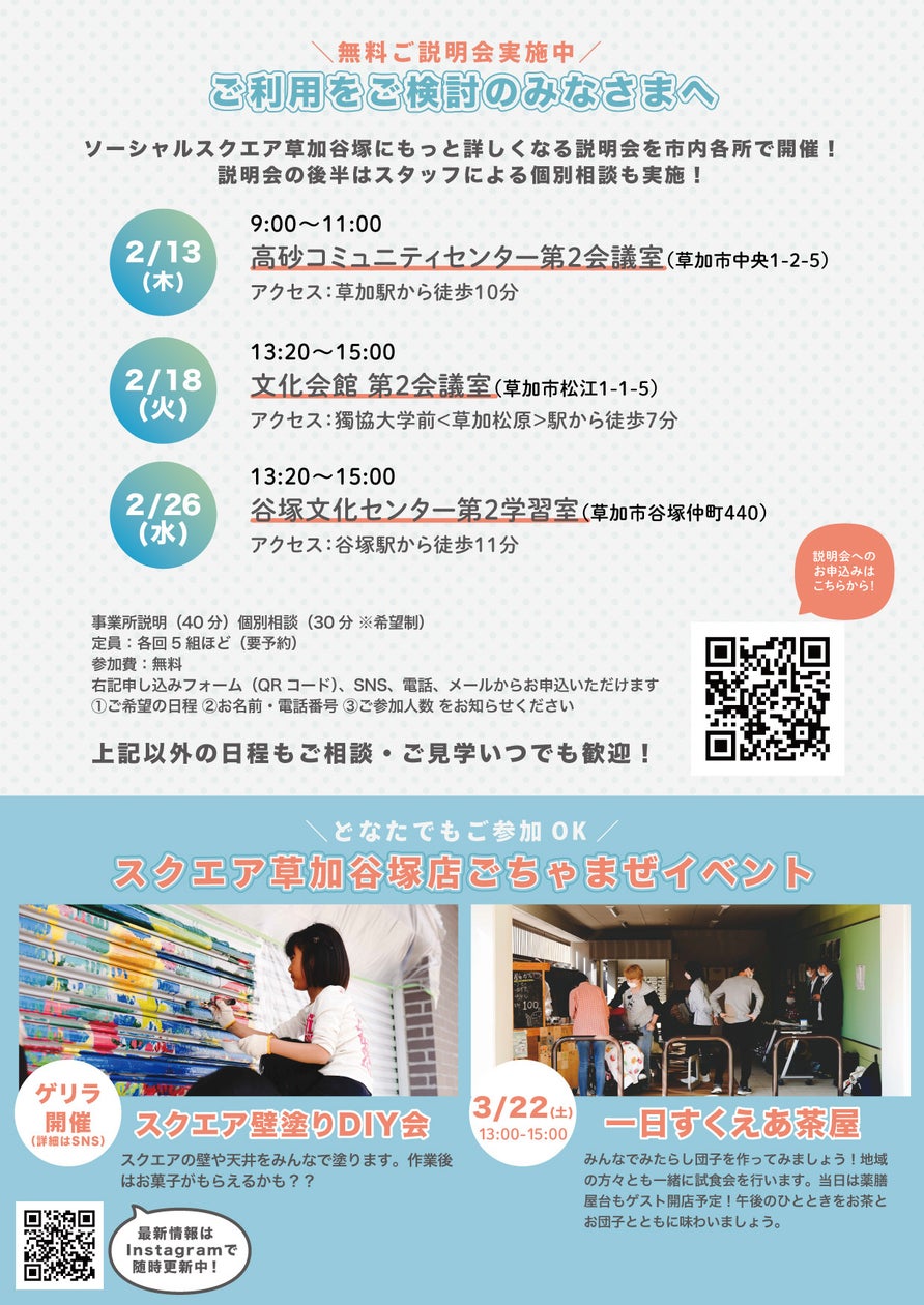 - 【NPO法人ソーシャルデザインワークス主催】SOCIALSQUARE 草加谷塚店無料説明会実施