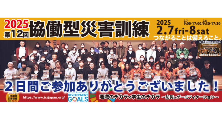 認定特定非営利活動法人市民福祉団体全国協議会のプレスリリース(2025年2月18日 17時)。この度は大変お世話になりました。お陰様で12回目の協働型災害訓練が無事終了しました今年のテーマは、地域のチカラx学生のチカラ〜防災xゲーミフィケーション〜2日間でのべ200名もの方に参加頂き、様々な専門家が登壇してくださいました。
