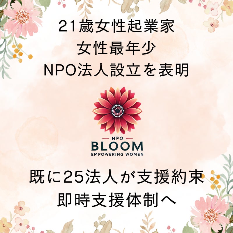 株式会社100COSMEのプレスリリース(2025年3月10日 08時31分)21歳女性起業家・臼田綾 女性最年少でNPO法人BLOOM設立へ  すでに25社以上が支援を表明し、即時支援体制を形成