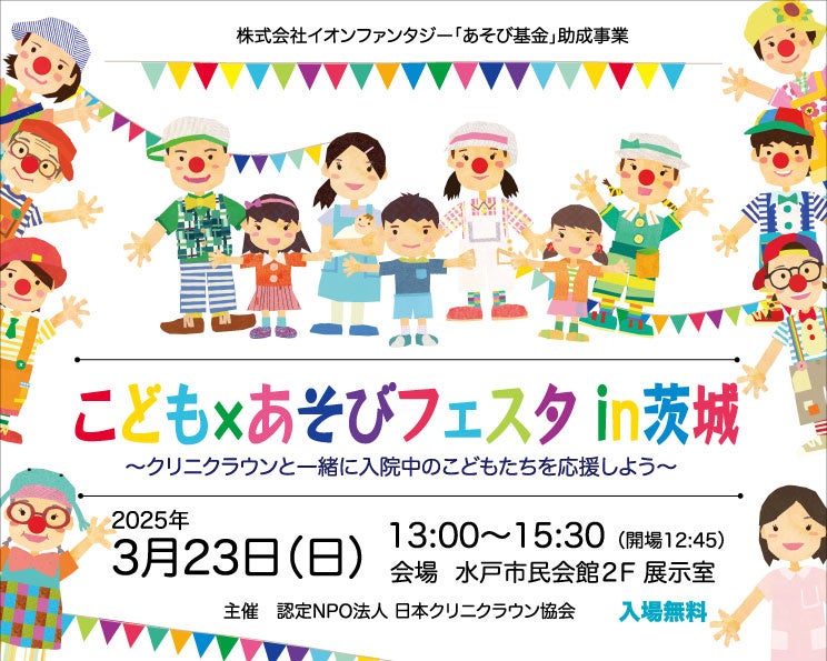 こども×あそびフェスタ in茨城~クリニクラウンと一緒に入院中のこどもたちを応援しよう~開催。認定NPO法人日本クリニクラウン協会が入院中のこどもたちを応援する新たなイベントを提案します。