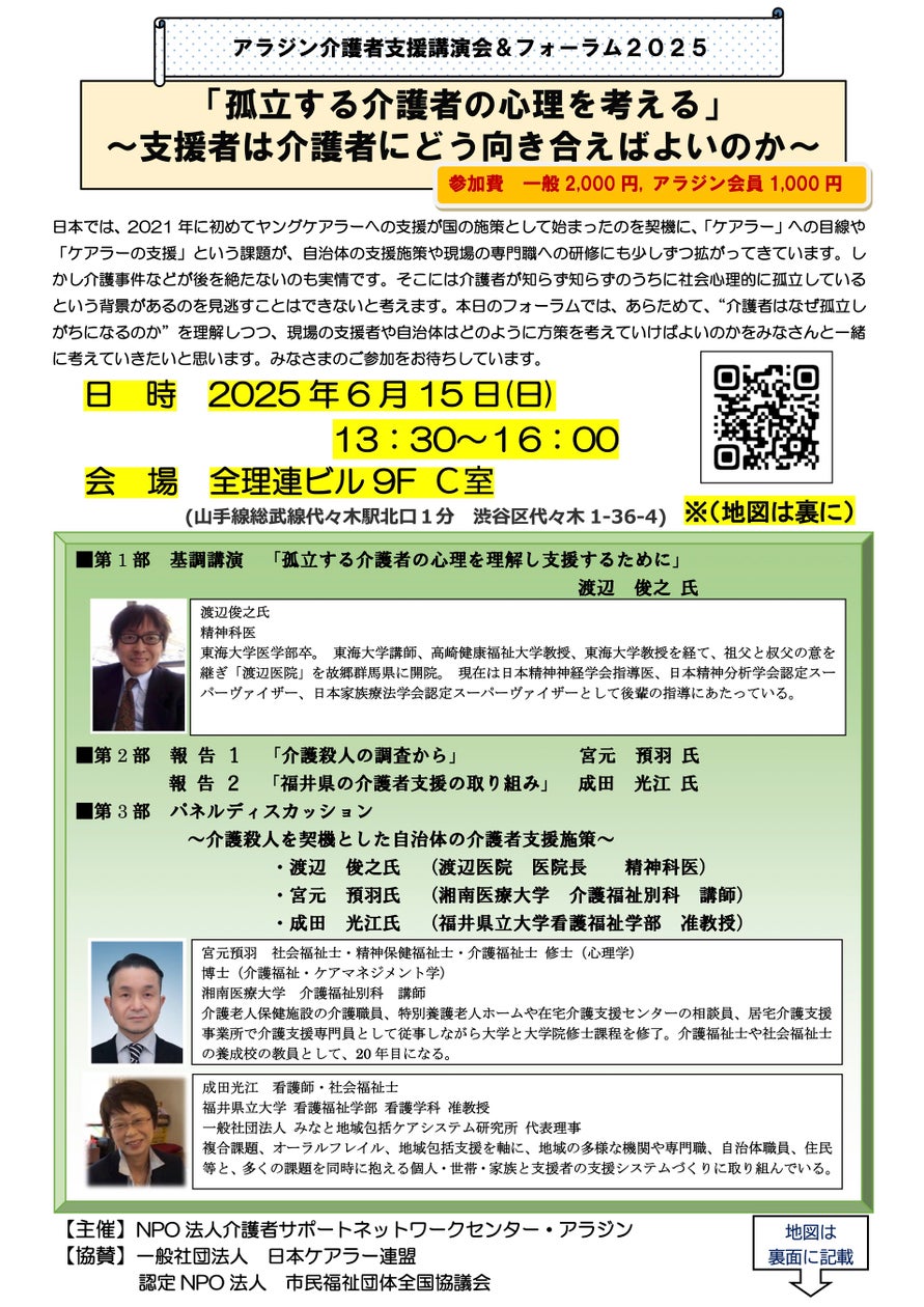 特定非営利活動法人市民福祉団体全国協議会のプレスリリース(2025年5月12日 12時00分)【6/15】アラジン介護者支援講演会&フォーラム2025「孤立する介護者の …