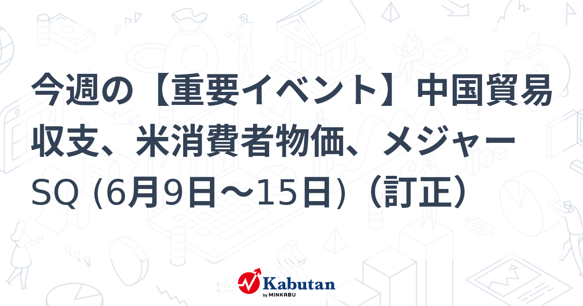 - 今週の【重要イベント】中国貿易収支、米消費者物価、メジャーSQ (6月9日~15日)