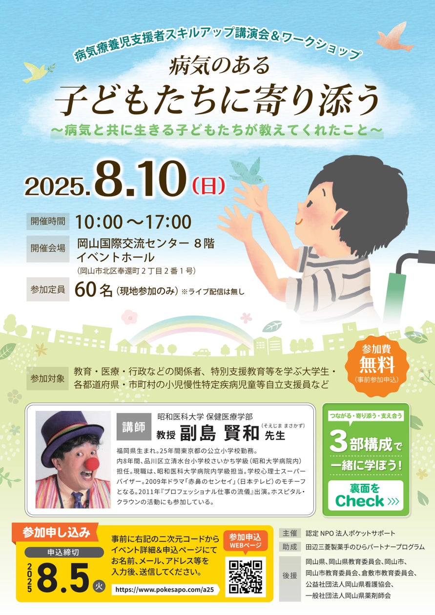 認定特定非営利活動法人ポケットサポートのプレスリリース(2025年7月23日 13時55分)病気のある子どもたちに寄り添うとは? 現場の支援者が集うスキルアップ講演会&ワークショップを開催(参加無料)|8月10日 岡山