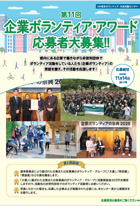 社会福祉法人 東京都社会福祉協議会 東京ボランティア・市民活動センターのプレスリリース(2025年9月10日 17時04分)第11回「企業ボランティア・アワード」募集開始!