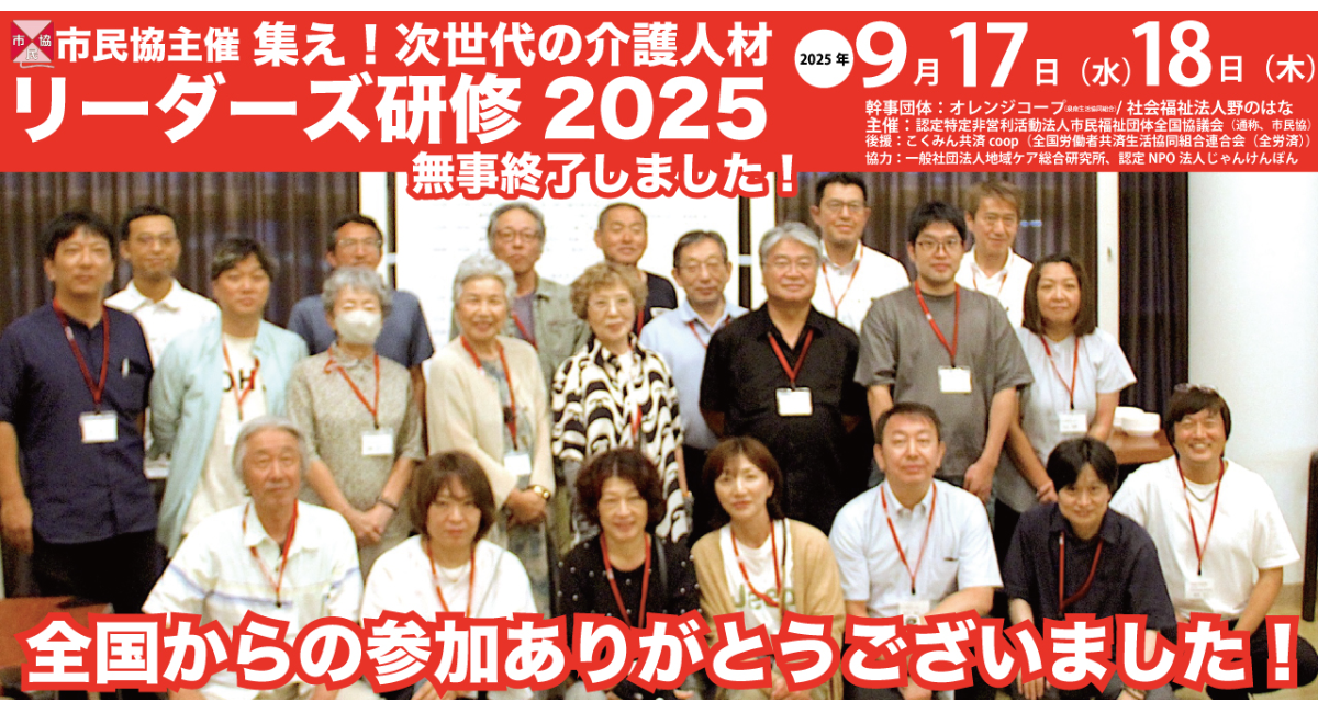 認定特定非営利活動法人市民福祉団体全国協議会のプレスリリース(2025年9月22日 9時)。介護系事業者900団体の会員を有し、身近な地域での助け合い・支え合い、優しい福祉のある地域社会づくりを推進している認定特定非営利活動法人市民福祉団体全国協議会(本社:東京都新宿区、代表理事:鷲尾公子・とよしま亮介、略称市民協)は、会員のチカラを育て、現場の活動を繋げるため、リーダーズ研修2025in大阪「第10期介護保険事業計画目前!2040年に備えよ!」の1日目を開催しました。