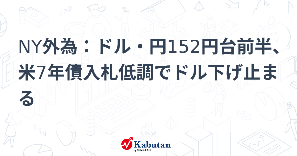 - NY外為:ドル・円152円台前半、米7年債入札低調でドル下げ止まる | マーケット速報 - フィスコ