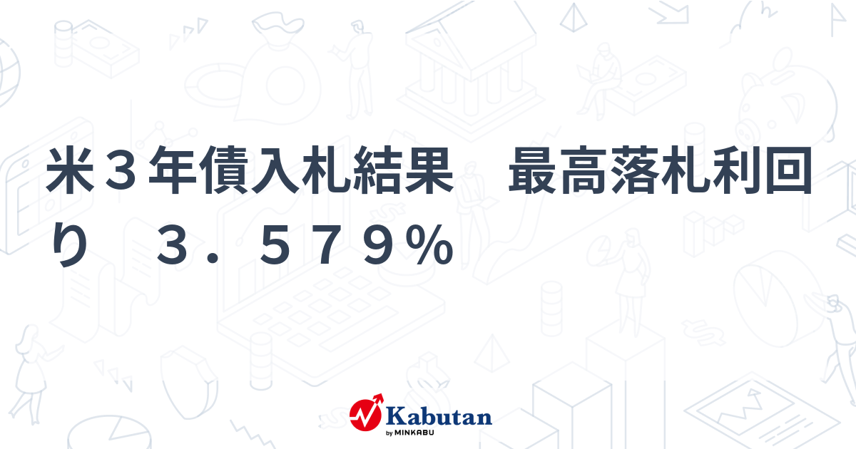 - 米3年債入札結果 最高落札利回り 3.579% 投稿日時 - みんかぶ