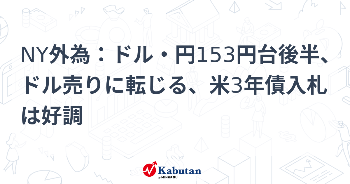 - 【通貨】NY外為:ドル・円153円台後半、ドル売りに転じる、米3年債入札は好調