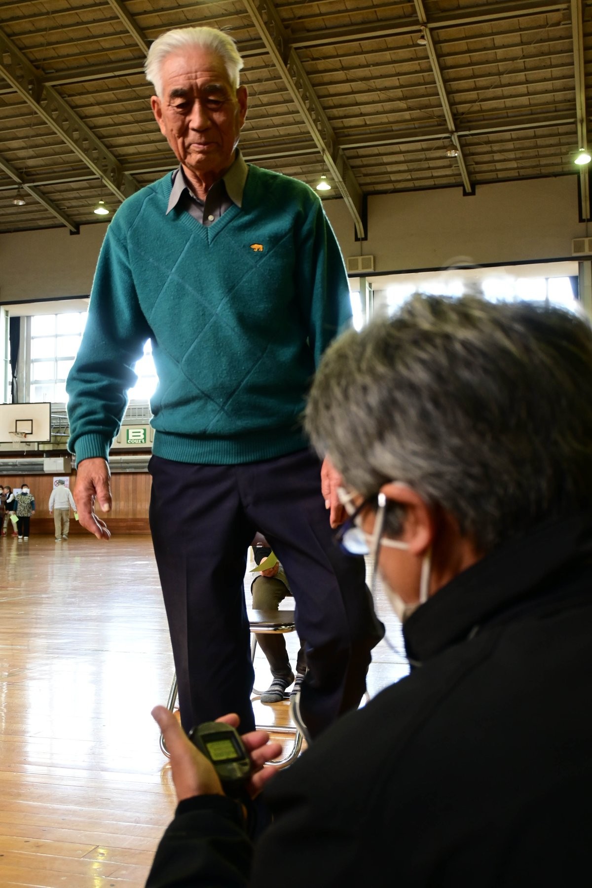 【根室】根室市老人クラブ連合会(佐藤巧会長)は、虚弱体質の解消で健康寿命を延ばそうと体力測定会を実施、参加した25人が5種目で自分の体力を推し測っていた。