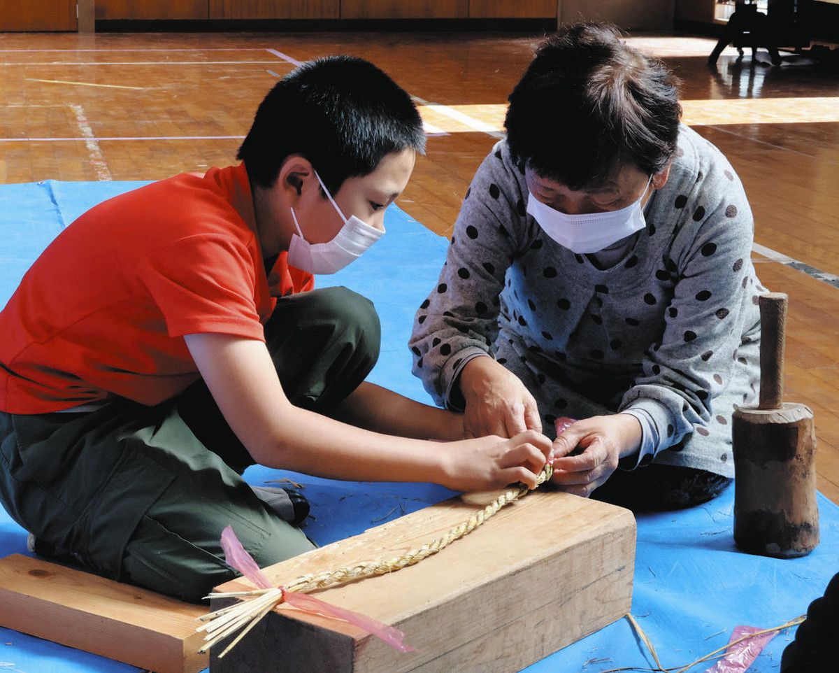 尾鷲市の向井小学校で20日、正月に飾るしめ縄作り教室があった。全校児童10人が、地域の老人会のメンバー9人に教えてもらいながら縄をない...