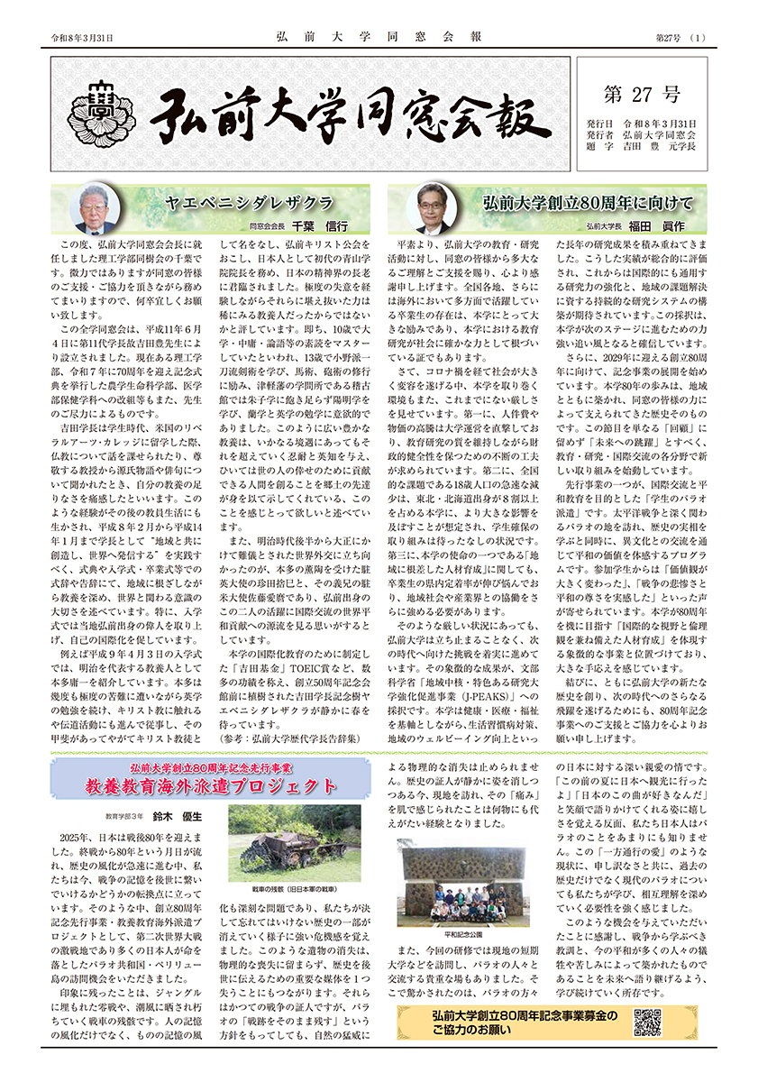 弘前大学同窓会報第27号発行のお知らせ 。弘前大学の新着情報では大学案内、入試情報、受験情報、研究・産学・地域連携、国際交流・留学、シラバス、就職 …