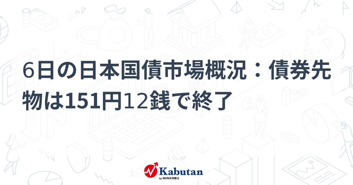 - 6日の日本国債市場概況:債券先物は151円12銭で終了 - 株探