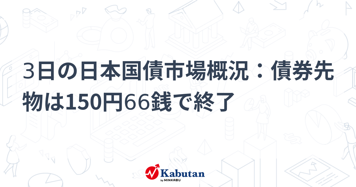 - 3日の日本国債市場概況:債券先物は150円66銭で終了 - 株探