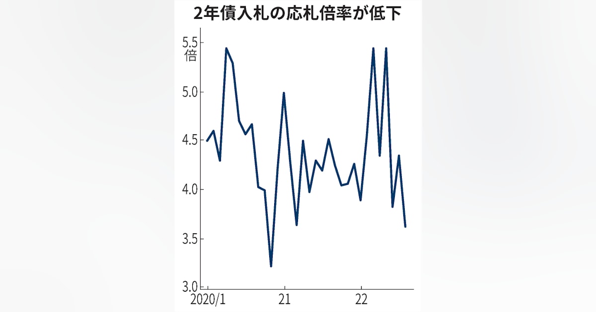 - 2年債入札、応札倍率1年9カ月ぶり低水準 - 日本経済新聞