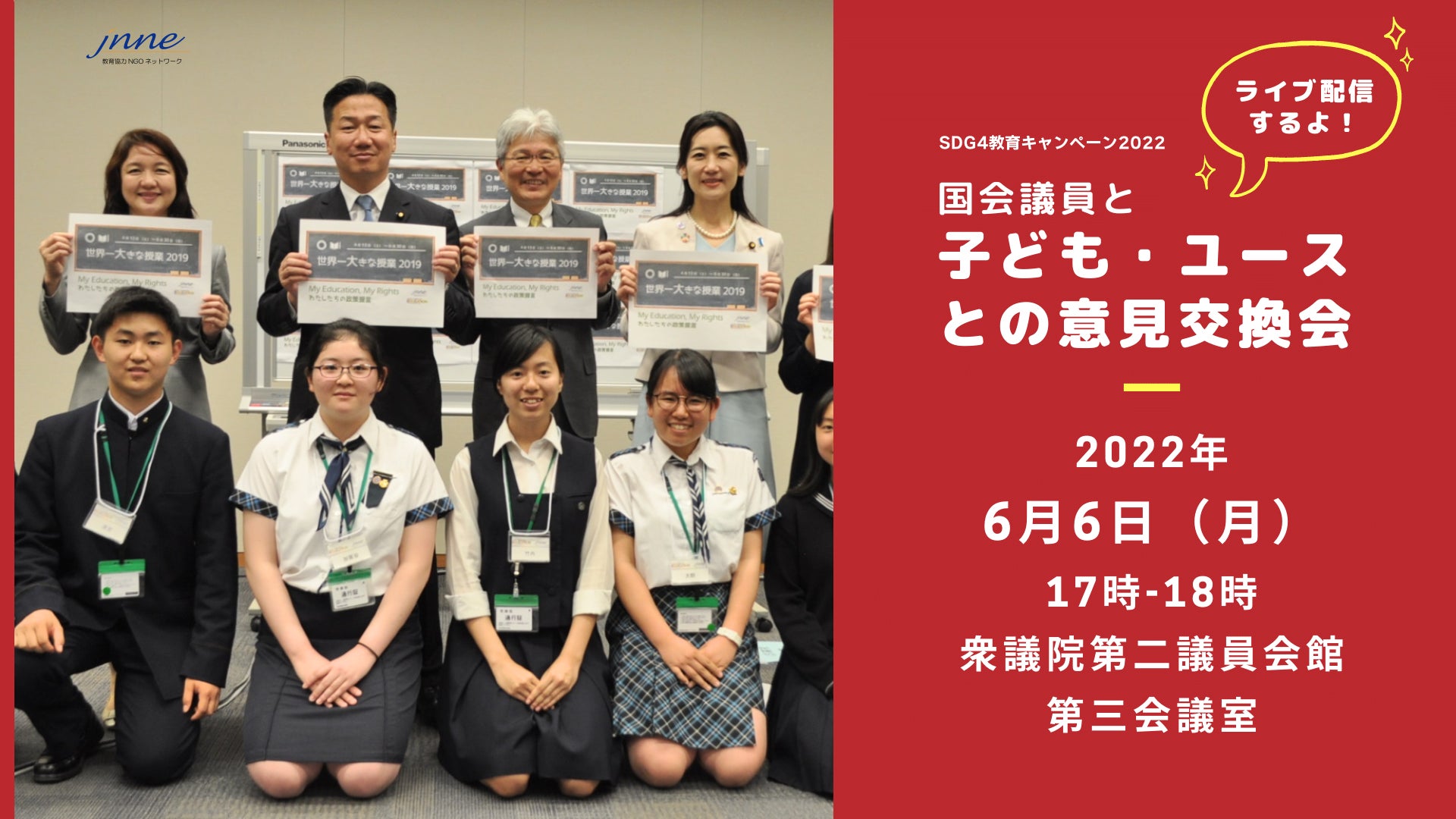 認定NPO法人開発教育協会のプレスリリース(2022年5月24日 11時51分)6/6(月)SDGsゴール4(教育目標)達成に向けて子ども・ユースが国会議員と意見交換します!