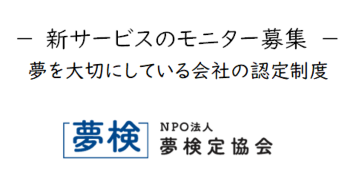 - 新サービス「夢を大切にしている会社の認定制度」のモニター企業様を募集-NPO法人夢検定協会