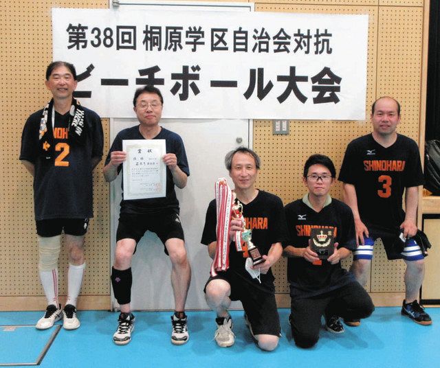 近江八幡市桐原学区の第三十八回自治会対抗ビーチボール大会(中日新聞社後援)が三日、桐原小学校体育館であり、男子は篠原町、女子は五月が優...