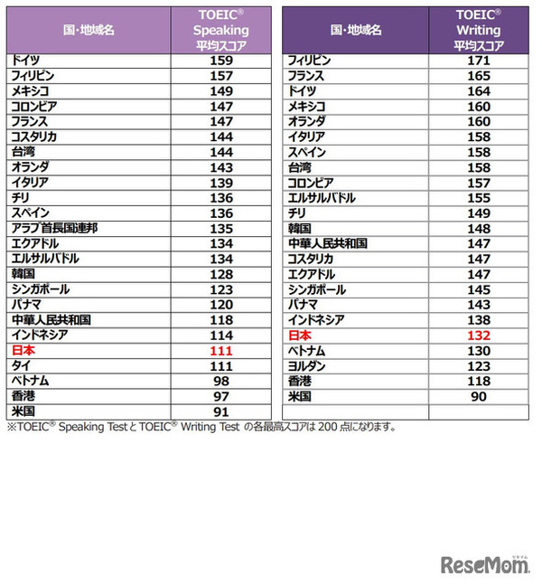 TOEIC国別平均スコア、日本はスピーキング111点で20位 | 教育業界ニュース「ReseEd(リシード)」