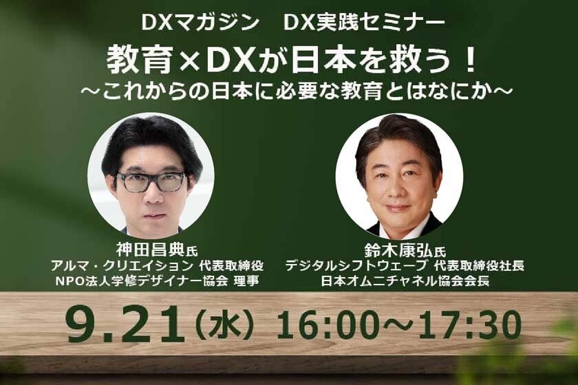 ゲストは、アルマ・クリエイション 代表取締役 NPO法人学修デザイナー協会 理事の神田昌典氏を迎えて開催いたします。 ・DX時代を迎えるにあたり、日本の教育と …