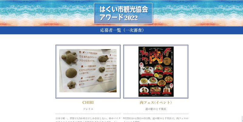 はくい市観光協会アワード2022。 羽咋市の素敵な商品やサービスがたくさん紹介されております。 私のNPO団体ソレイユからは、ミニ砂像のCHIRIを応募しております。 「これは良い!!」 と思われたものに、ぜひ投票をお願いいたします。