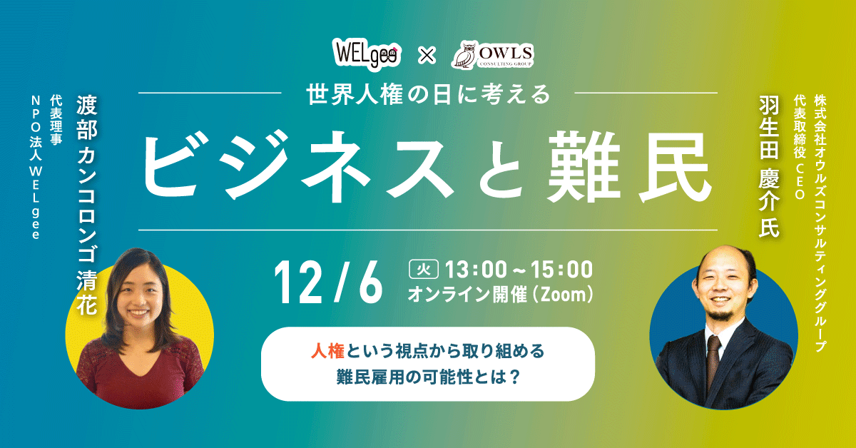 世界人権の日に考える「ビジネスと難民」。WELgeeとオウルズコンサルティンググループが特別 …