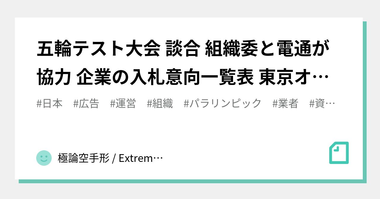 - 五輪テスト大会 談合 組織委と電通が協力 企業の入札意向一覧表 東京オリンピック ...