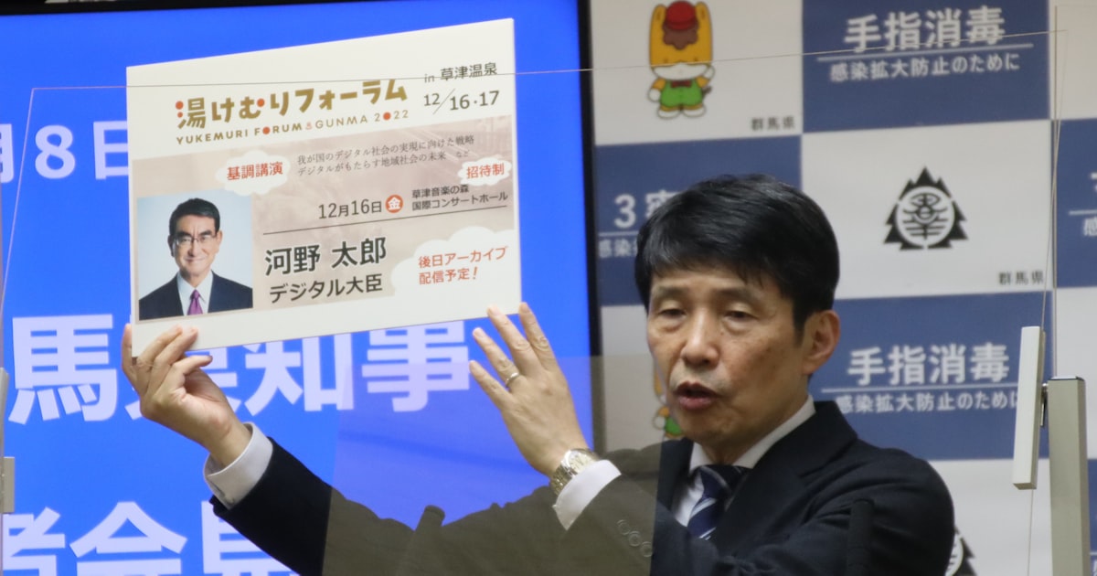 群馬県は16~17日、有識者が地域社会の未来について議論する「湯けむりフォーラム2022」を草津温泉(草津町)で開く。同フォーラムは20~21年度はオンラインで開催しており、対面で開くのは初めて。企業や自治体関係者などが参加する完全招待制のイベントで、議論の様子は23年2月以降に動画などで一般に公開する予定だ。16日は河野太郎デジタル相が「日本