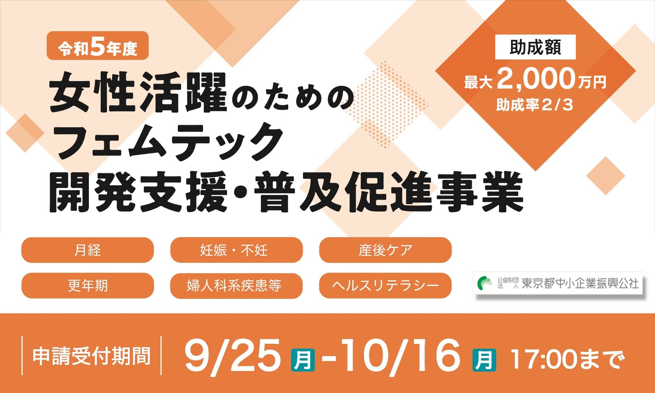 東京都 新規事業 フェムテック開発を支援 最大2,000万円助成 … 最大500万円】製品改良や、規格適合・認証取得の助成金ウェビナー9/8(金)開催決定.
