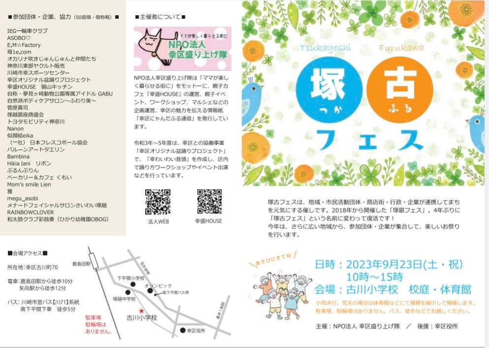 地域の繋がりや商店街の活性化を目的として、塚越銀座商盛会とNPO法人幸区盛り上げ隊がタッグを組み、企画したイベント(お祭り)です。 2018年に第1回目、翌年 …