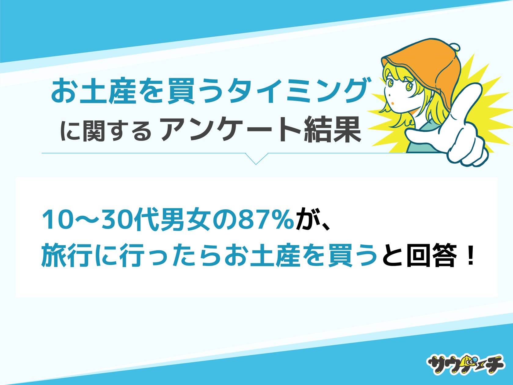 10~30代男女の87%が、旅行に行ったらお土産を買うと回答【旅行のお土産を買うタイミング …