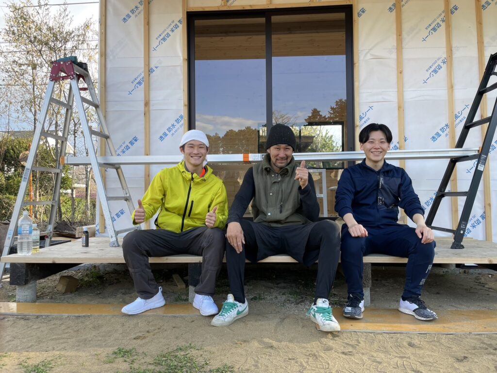 現在、レアーレグラウンドの移動式管理棟作りが進行中ですが、FCレアーレ卒業生のマサ君とケイスケ君が休日を返上して、わざわざ手伝いに来てくれました。