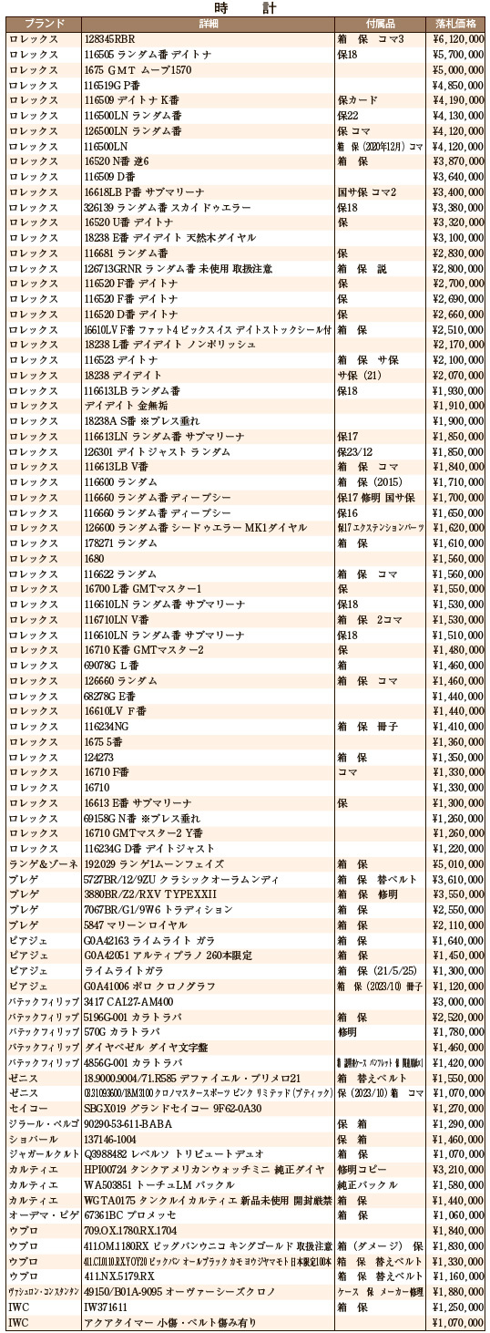 - JWA(日本時計オークション)落札DATA 2024年4月