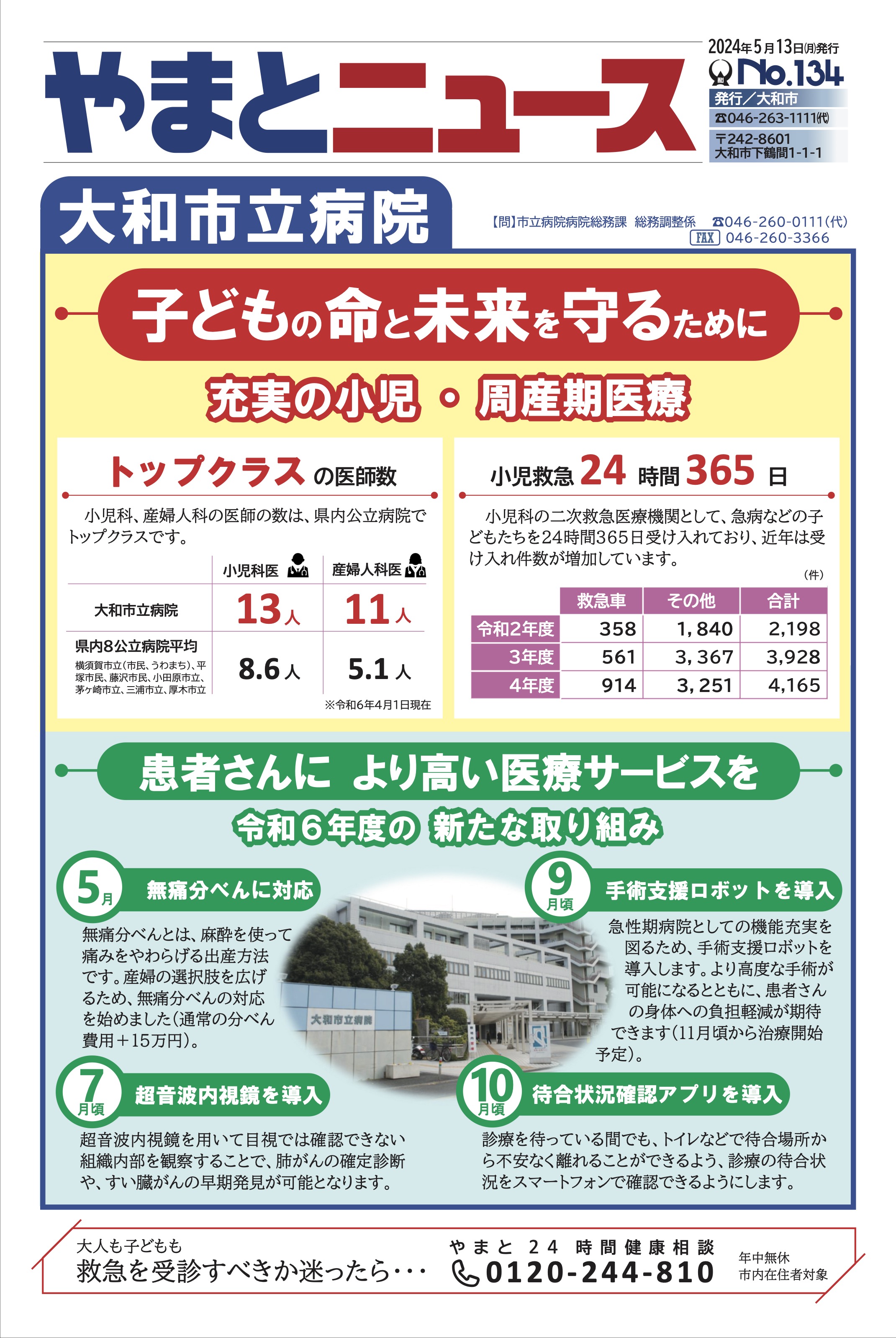 やまとニュースNo.134を発行しました更新日:2024年05月13日 「やまとニュース」は、市からの重要なお知らせや市民の皆さんに至急お知らせしなくてはならないことなどを分かりやすくお伝えするものです。 サイズはタブロイド判で、発行時期は毎月中旬。市内全戸に1週間程度で配布し、次の場所にも配架します。配布場所市役所市立病院保健福祉センター各学習センター、各市立図書館など関連ページ「市民の掲...