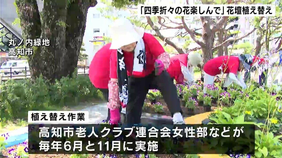四季折々の花々を楽しんでもらおうと高知県高知市中心部で、花壇の植え替え作業が行われました。花壇の植え替え作業は、高知市老人クラブ連合会女性部などが …