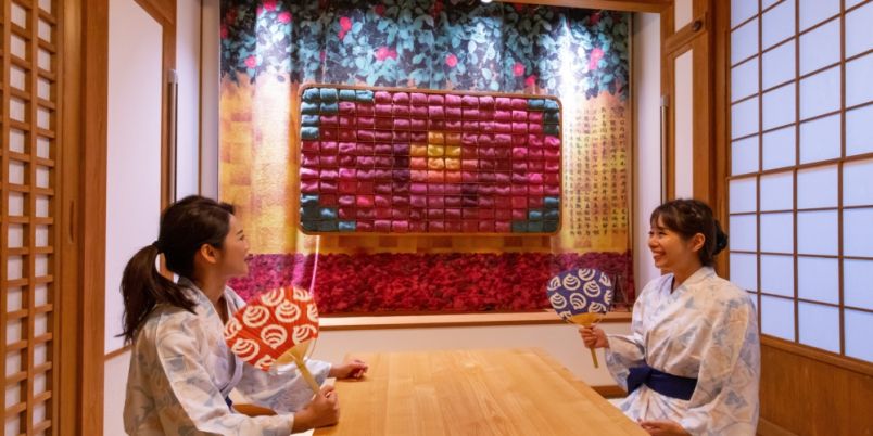 道後温泉のシンボル・道後温泉本館の姉妹館として人気の「道後温泉別館 飛鳥乃湯泉(どうごおんせんべっかん あすかのゆ)」。伝統工芸やアートに彩られた館内では、本館と同じ源泉の名湯と、大広間や個室での休憩やお茶菓子の接待も楽しめます!