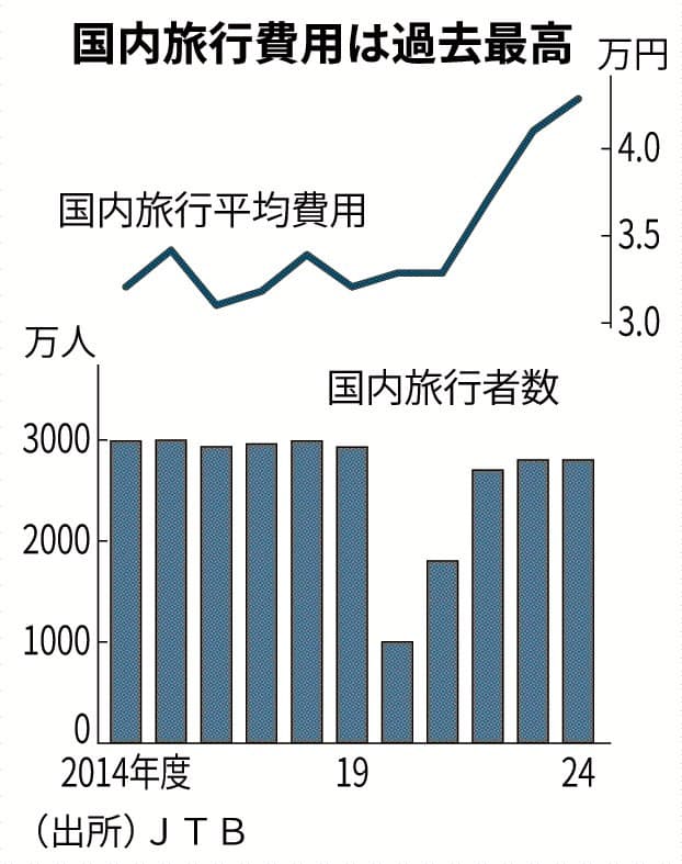 旅行各社やホテルの予約は23年度を上回っているところが多い。実質賃金の減少を受け節約志向は根強く、旅費の高い日程や旅先を避ける動きも目立つ。 JTBは5日、 …