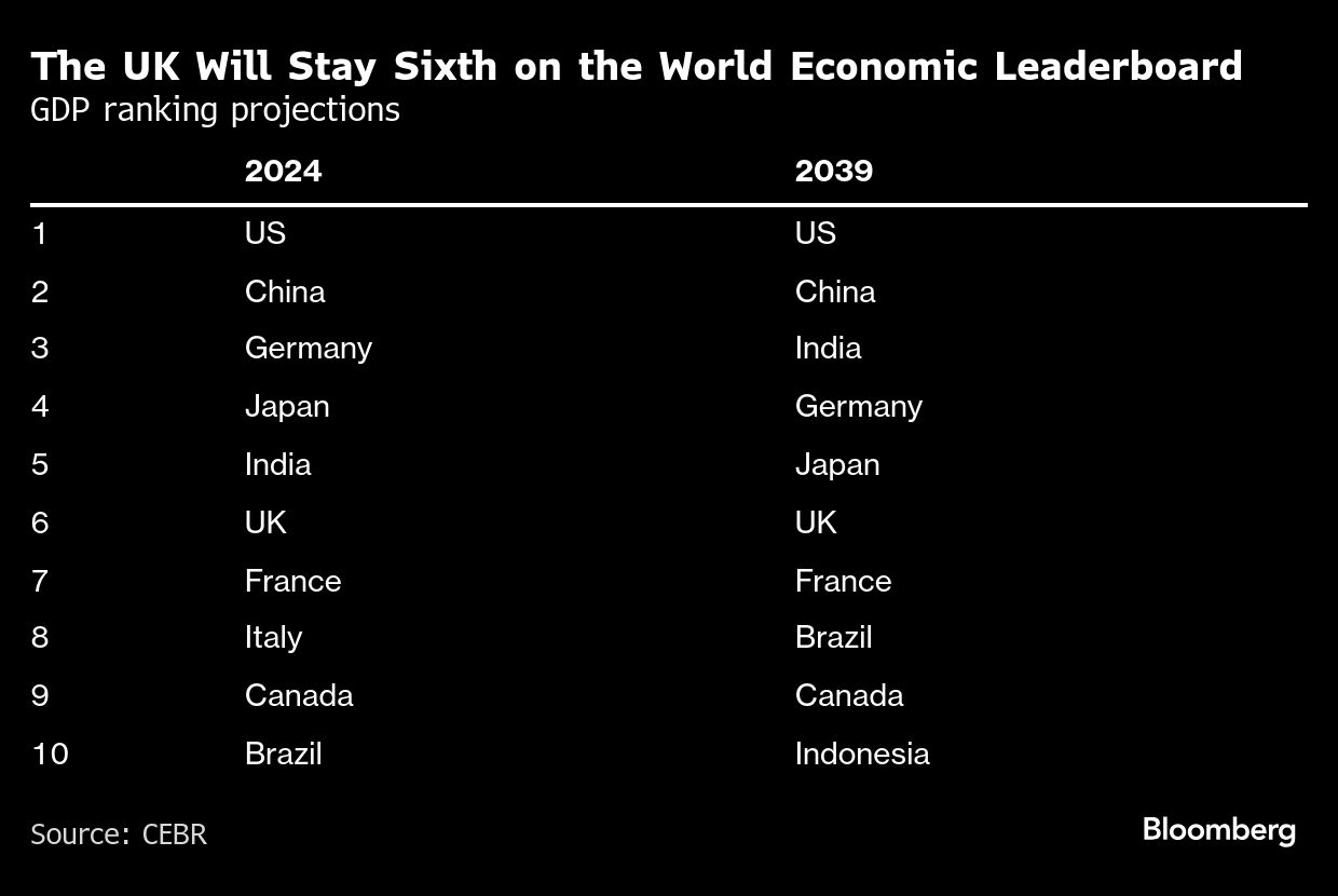 日本の国内総生産(GDP)が、2039年に世界5位に後退すると英シンクタンクの経済ビジネス・リサーチ・センター(CEBR)が予測した。