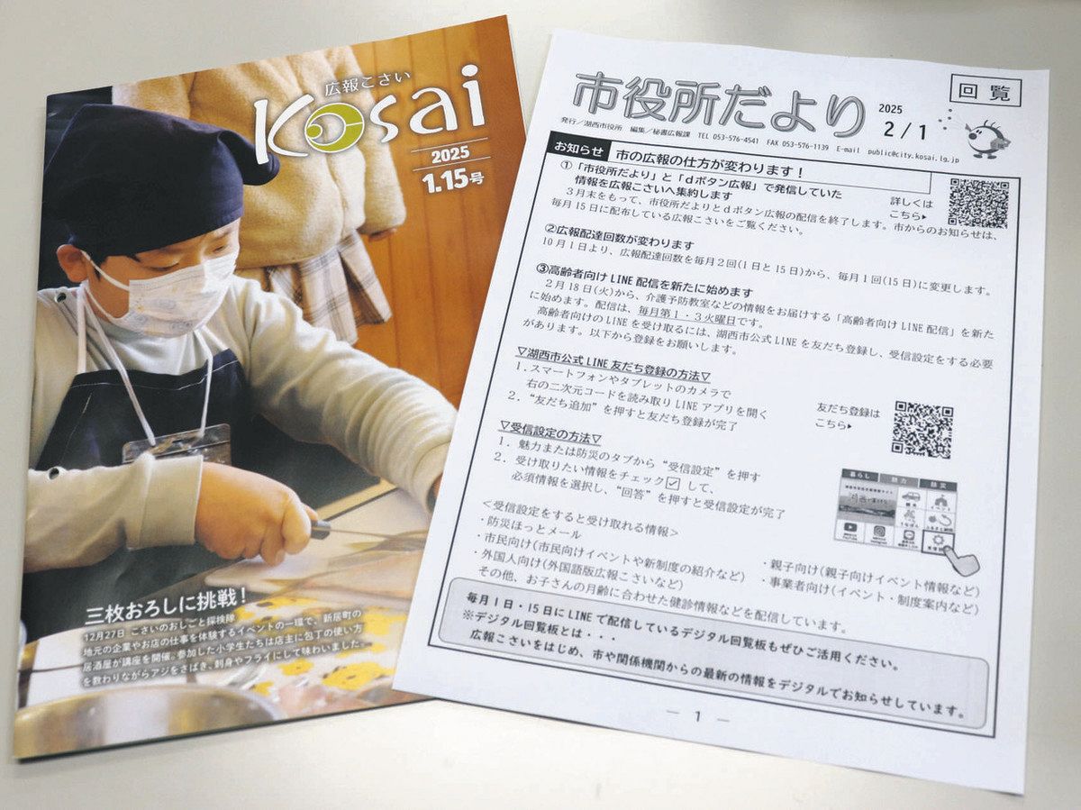 湖西市は3月末、回覧向けの広報紙「市役所だより」の発行を終える。地上デジタル放送のデータ放送による情報配信も終了し、4月からは毎月15日発行の広報 …